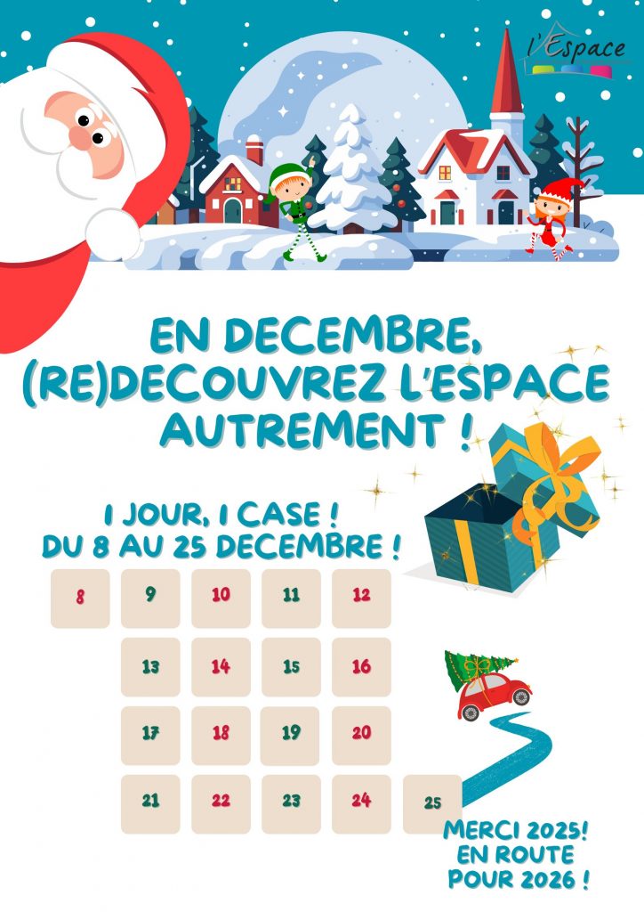 Du 08 au 25 Décembre, nous vous proposons de découvrir ou redécouvrir votre centre social l’Espace !