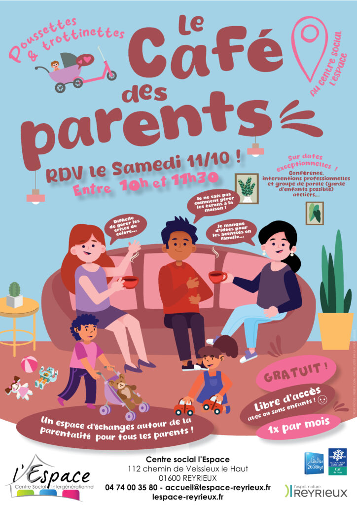 Chaque année, votre centre social l’Espace accueille plus de 500 adhérents dont la majorité sont des enfants avec leurs parents. Nous sommes régulièrement sollicités par les familles qui se questionnent au sujet de leur fonction parentale et il n’est pas toujours simple de trouver des réponses. Ce café des parents sera donc l’occasion de partager autour de vos questionnements, se confier, souffler, se ressourcer, échanger des conseils,…Le tout dans un environnement neutre, convivial et sans jugements.